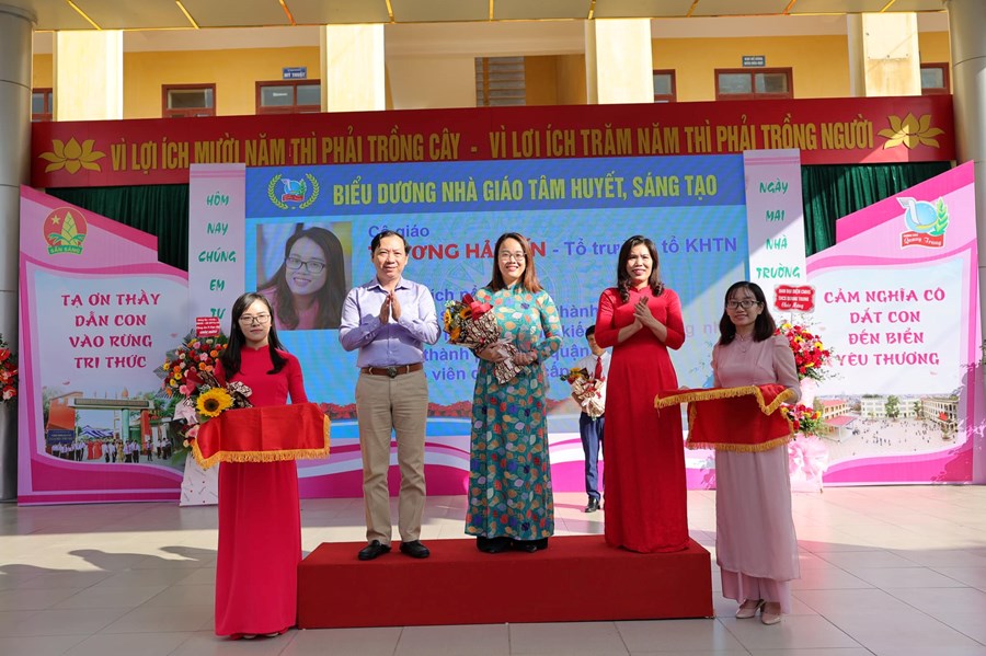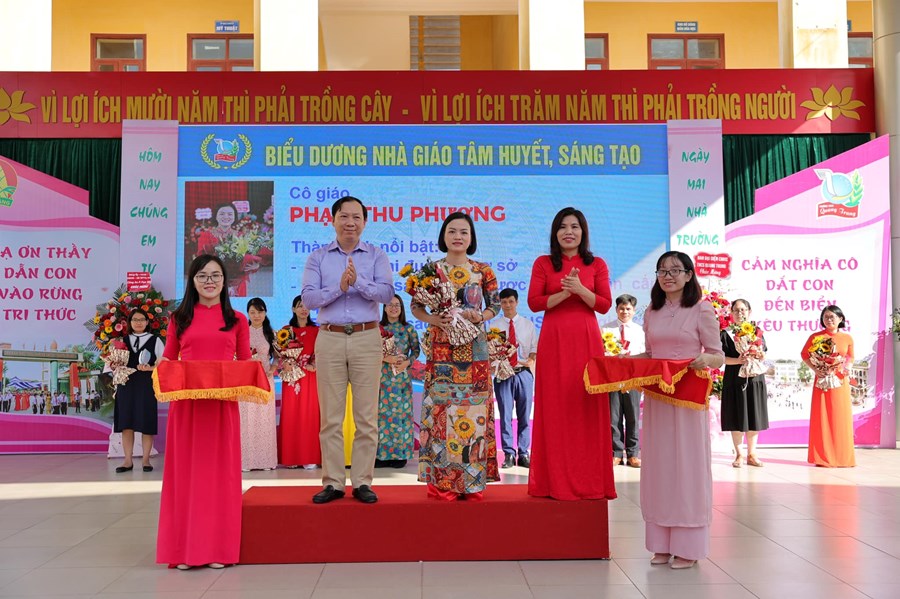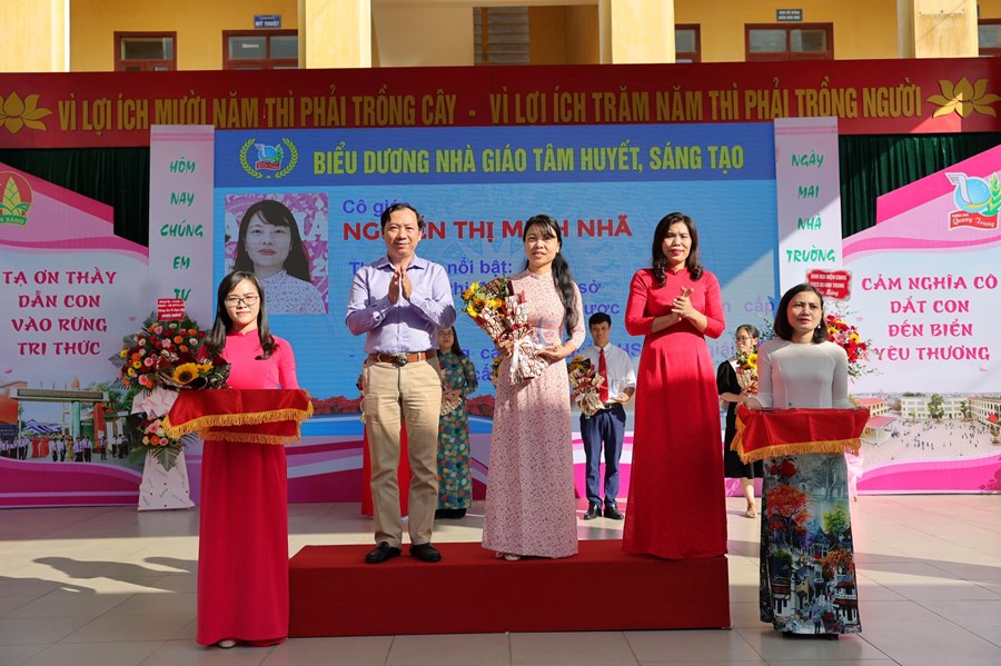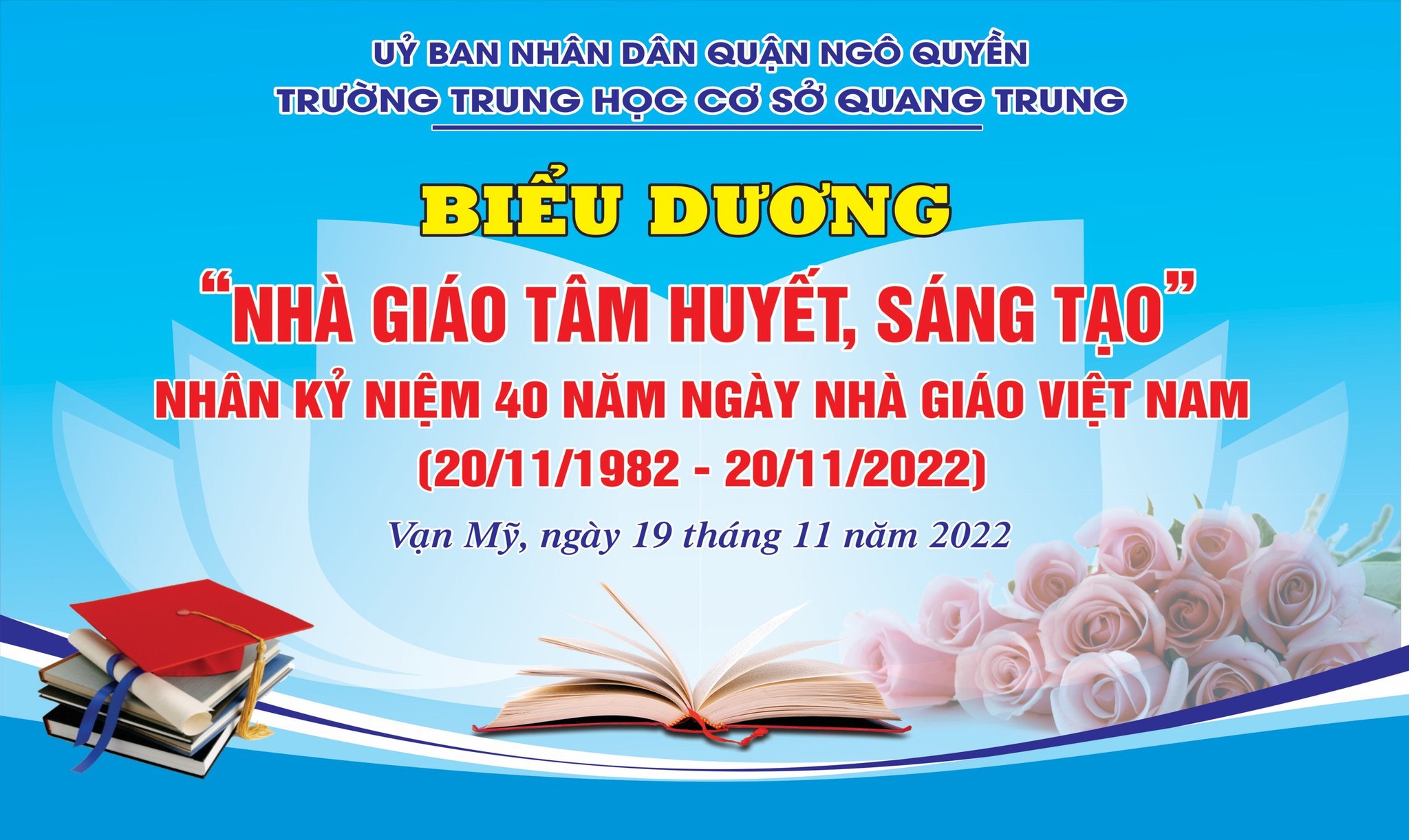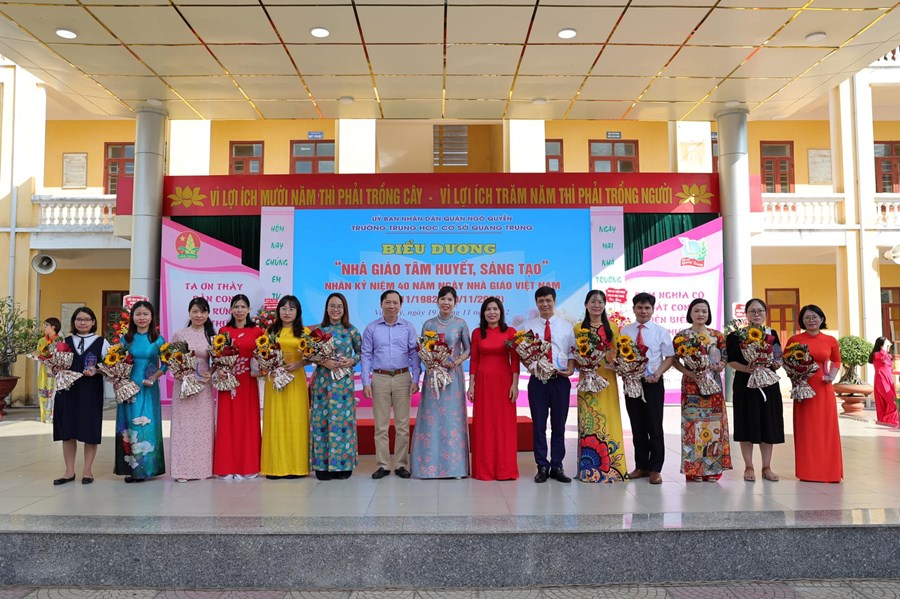 Trong chương trình kỷ niệm 40 năm Ngày Nhà giáo Việt Nam, trường THCS Quang Trung Biểu dương 10 thầy cô đạt danh hiệu Giáo viên dạy giỏi cấp quận, 13 thầy cô được vinh danh “Nhà giáo tâm huyết, sáng tạo”