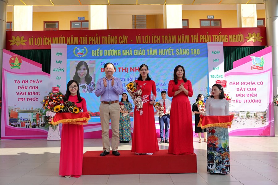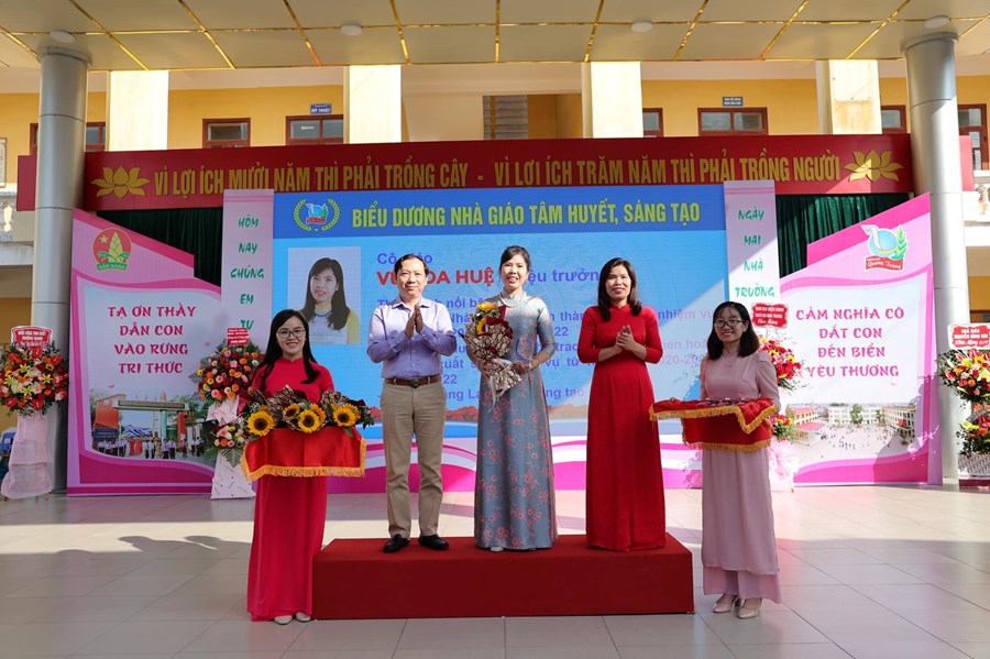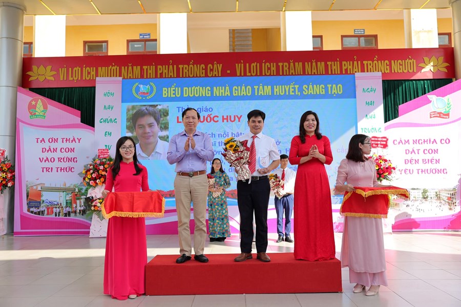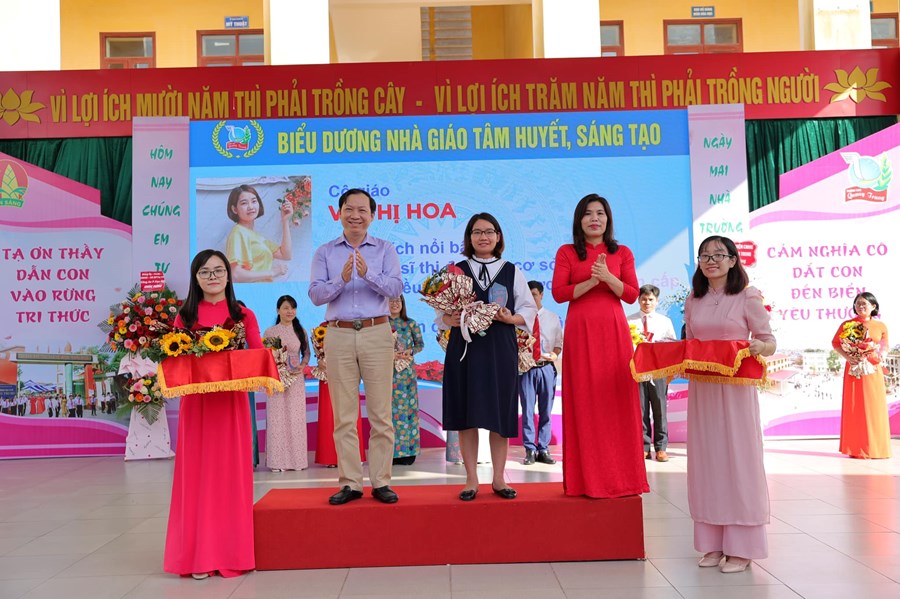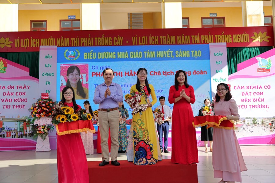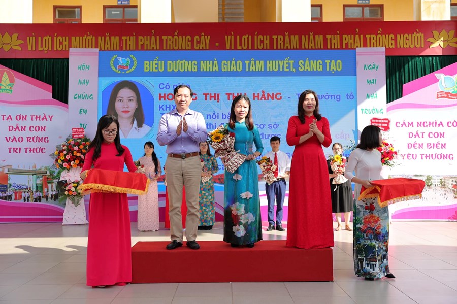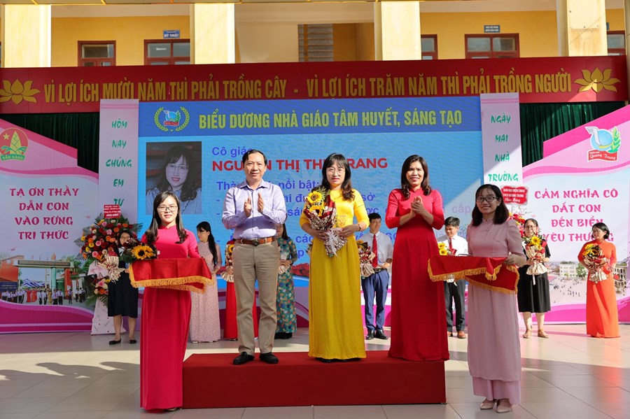 Trong chương trình kỷ niệm 40 năm Ngày Nhà giáo Việt Nam, trường THCS Quang Trung Biểu dương 10 thầy cô đạt danh hiệu Giáo viên dạy giỏi cấp quận, 13 thầy cô được vinh danh “Nhà giáo tâm huyết, sáng tạo”