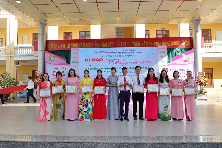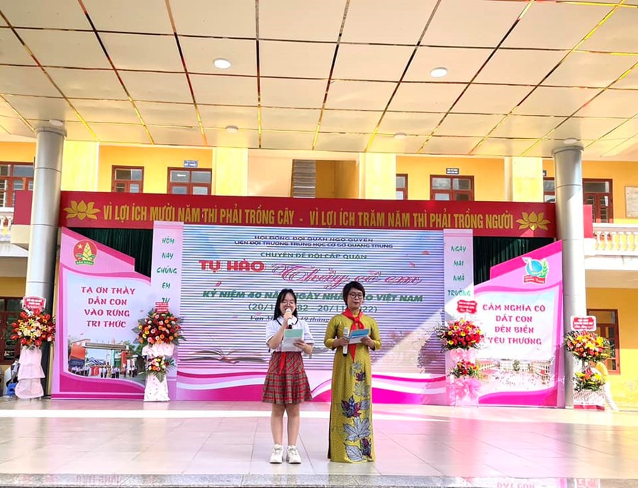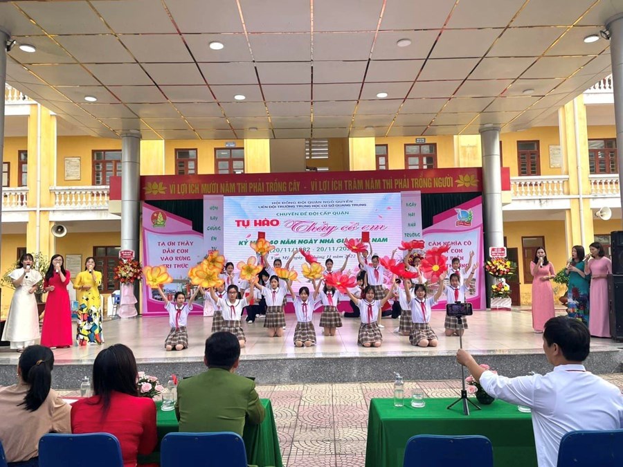 Hoà chung khí thế tưng bừng, phấn khởi của Ngành giáo dục cả nước kỉ niệm 40 năm ngày nhà giáo Việt Nam (20/11/1982 - 20/11/2022), sáng ngày 19/11/2022, Liên đội trường THCS Quang Trung long trọng tổ chức kỉ niệm 40 năm Ngày nhà giáo Việt Nam với chuyên đề “Tự hào thầy cô em”.
