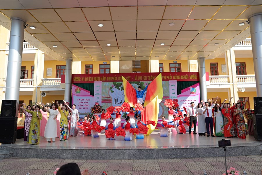 Trong diễn văn kỉ niệm, cô giáo Vũ Hoa Huệ- Bí thư Chi bộ, Hiệu trưởng nhà trường đã ôn lại truyền thống 40 năm Ngày nhà giáo Việt Nam đồng thời khẳng định nghề giáo hiện nay dù có nhiều vất vả, gian nan, những áp lực vô hình nhưng vẫn luôn là nghề cao quý nhất trong các nghề cao quý. Nhân dịp này, nhà trường đã ghi nhận và biểu dương các thầy cô giáo điển hình trong phong trào yêu nước, tâm huyết, trách nhiệm, đổi mới - sáng tạo.