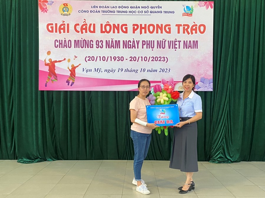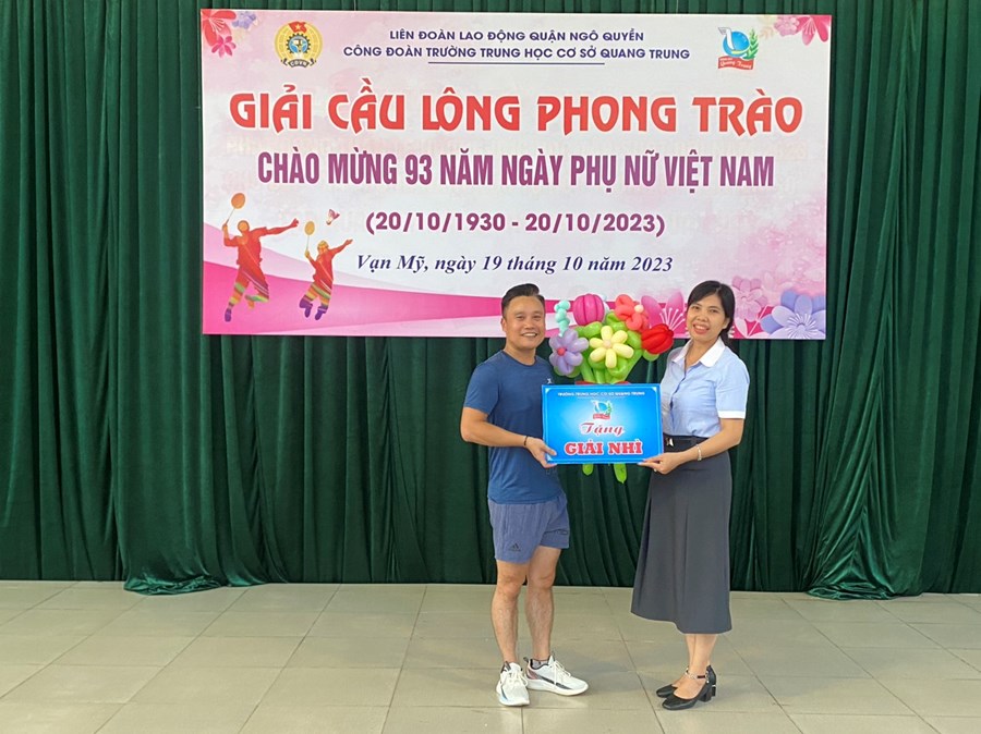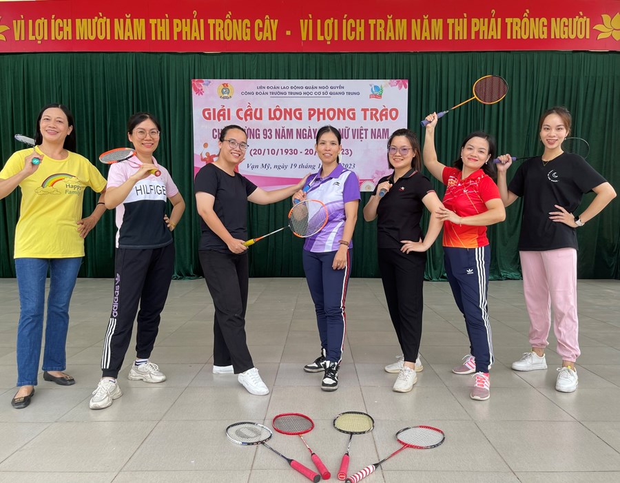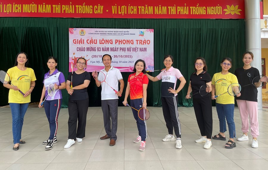 Trong không khí phấn khởi kỷ niệm 93 năm ngày thành lập Hội liên hiệp Phụ nữ Việt Nam (20/10/1930 - 20/10/2023), chiều ngày 19/10/2023 Công đoàn trường THCS Quang Trung tổ chức giải Cầu lông phong trào, tạo sân chơi lành mạnh khuyến khích đoàn viên Công đoàn nhà trường. Hoạt động đã nhận được sự hưởng ứng nhiệt tình của đoàn viên các tổ Công đoàn, và đặc biệt là sự háo hức, mong chờ của các em học sinh.