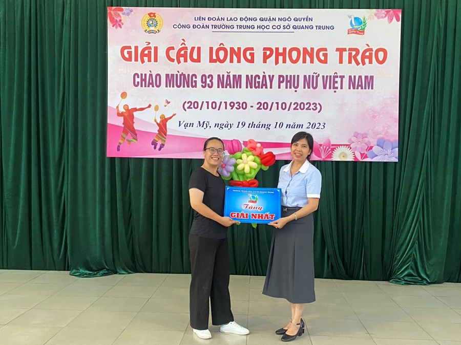 Sau khi những trận đấu kết thúc, Đồng chí Vũ Hiệu trưởng và đồng chí Phan Thị Hằng- Chủ tịch Công đoàn nhà trường đã lên trao giải cho các đội chơi. Giải cầu lông kết thúc đã để lại ấn tượng tốt đẹp trong lòng các thầy cô giáo và các em học sinh.