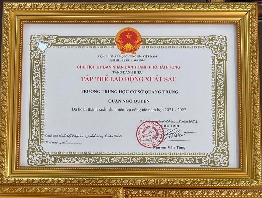 Trường THCS Quang Trung hoà cùng niềm vui và tự hào với ngành giáo dục quận, trường đã vinh dự được Thành phố biểu dương, khen thưởng: