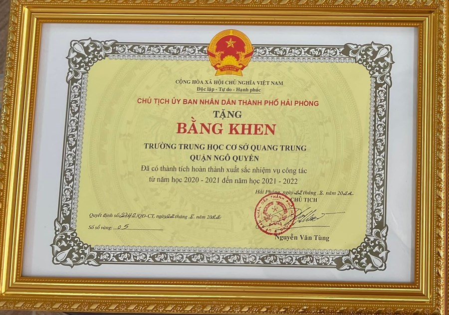 - Nhận Bằng khen ”Hoàn thành xuất sắc nhiệm vụ từ năm học 2020-2021 đến năm học 2021-2022”