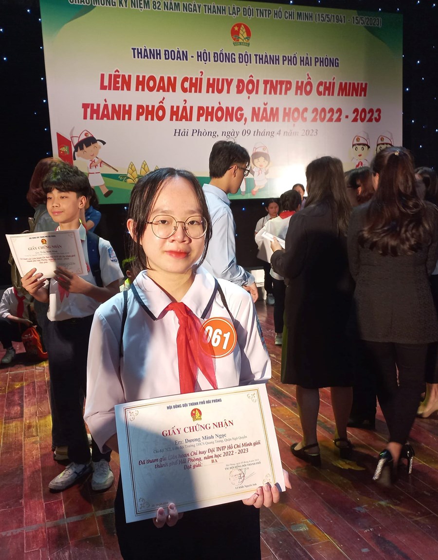 Với sự nỗ lực và quyết tâm, em Dương Minh Ngọc - Liên đội phó, Chi đội trưởng Chi đội 7C2, Liên đội THCS Quang Trung đã đoạt giải Ba Hội thi Chỉ huy Đội giỏi cấp Thành phố.