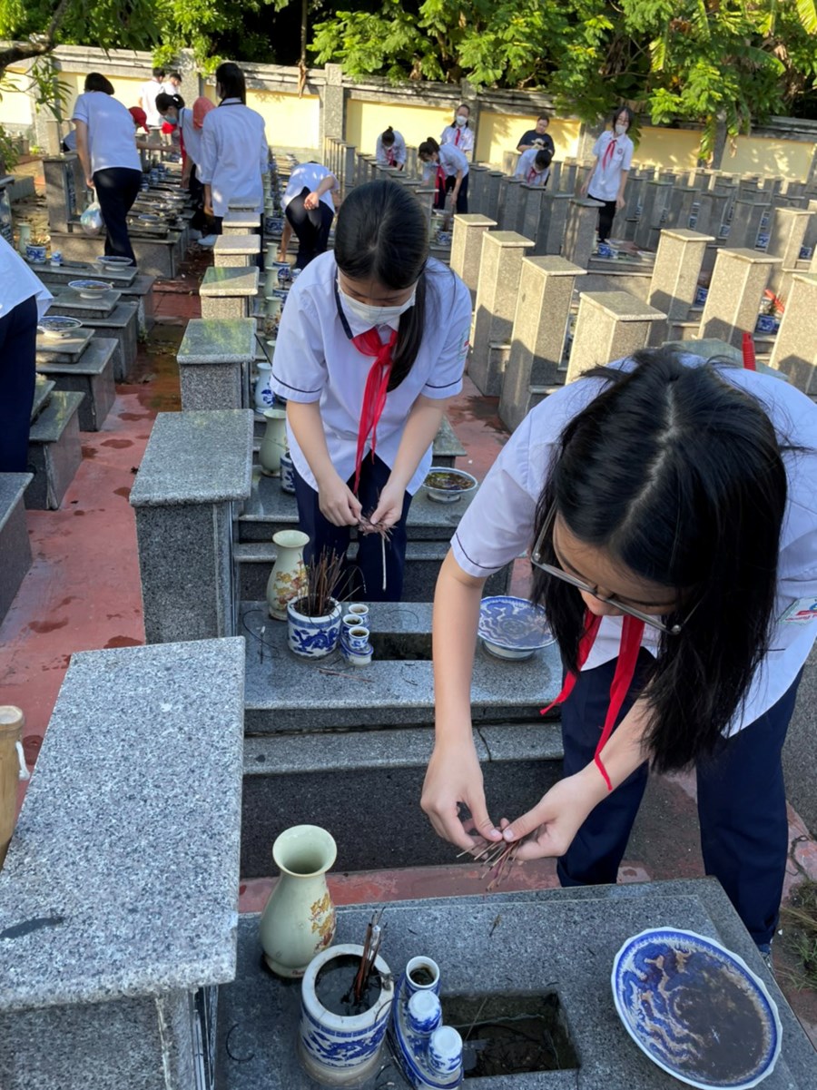 Những nén hương thơm, những hành động thiết thực của tuổi trẻ trường THCS Quang Trung hôm nay là lời tri ân sâu sắc nhất gửi tới các thế hệ cha ông đi trước đã anh dũng chiến đấu để có cuộc sống hòa bình, ấm no. Đây là một trong những hoạt động thường niên, thiết thực, ý nghĩa nhân văn sâu sắc của Tuổi trẻ quận Ngô Quyền nói chung, của Chi đoàn và Liên đội nhà trường nói riêng nhằm tuyên truyền, giáo dục truyền thống cách mạng, nâng cao nhận thức,trách nhiệm của thanh thiếu nhi trong công cuộc xây dựng và bảo vệ Tổ quốc.