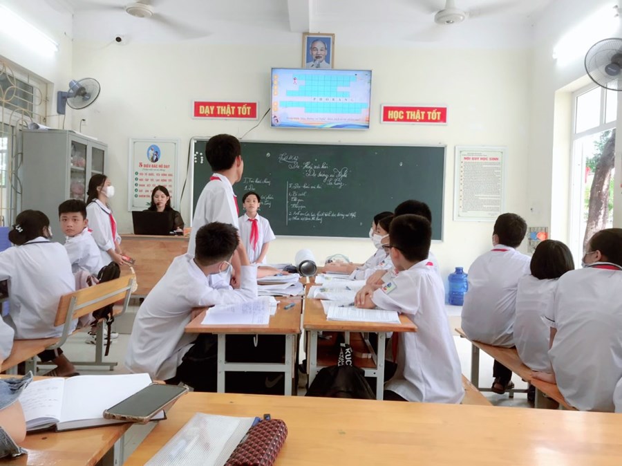 Trong không khí tưng bừng, phấn khởi của những ngày đầu năm mới, Thực hiện kế hoạch chuyên môn năm học 2022 - 2023 của nhà trường, chiều ngày 22/09/2022 tổ KHXH trường THCS Quang Trung đã tổ chức chuyển đề “Đổi mới phương pháp dạy học, đổi mới kiểm tra đánh giá nhằm phát triển năng lực của học sinh trong một tiết dạy Ngữ văn 7” do cô giáo Nguyễn Hà Vy thực hiện với bài học: Thực hành đọc hiểu văn bản “Dọc đường vô xứ Nghệ”. Tiết học diễn ra sôi nổi, tạo sự hứng thú, tính sáng tạo và tích cực trao đổi ý kiến của các em học sinh thông qua các phương pháp dạy học được giáo viên vận dụng linh hoạt trong từng hoạt động. Tiết học chuyên đề đã thành công tốt đẹp, khích lệ tinh thần học tập của các em HS và mang lại những kinh nghiệm quý báu đối với các thầy cô giáo để ngày càng nâng cao hơn chất lượng giảng dạy bộ môn Ngữ văn trong nhà trường.