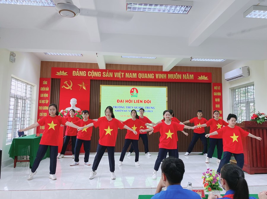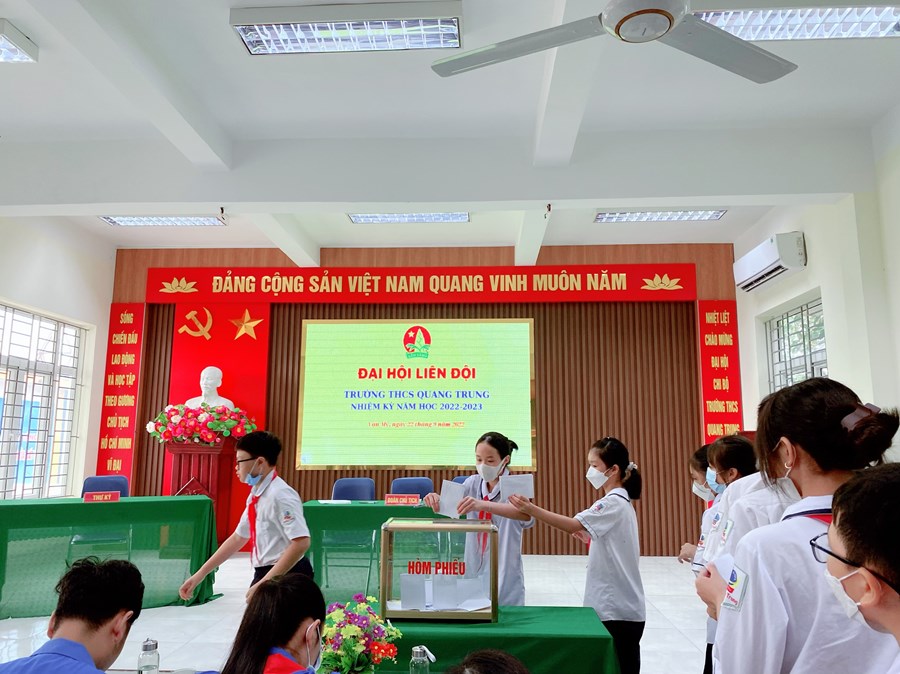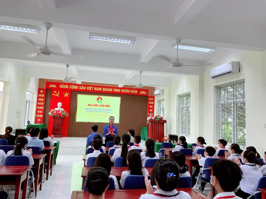 Thực hiện Kế hoạch công tác Đội và phong trào thiếu nhi năm học 2022-2023, Chiều ngày 22/09, Liên đội THCS Quang Trung tổ chức Đại hội Liên đội nhiệm kì năm học 2022 – 2023. Dự chỉ đạo và động viên Đại hội có: Chị Lê Thị Thùy Trang – Bí thư Đoàn quận, Chủ tịch hội đồng đội Quận, anh Trần Đức Ngọc – Phó bí thư Đoàn phường – Phó chủ tịch Hội đồng đội phường Vạn Mỹ. Cô giáo Vũ Hoa Huệ - Bí thư Chi bộ, Hiệu trưởng Nhà trường.