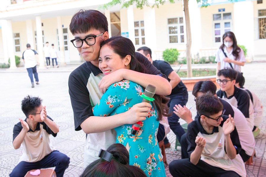 Nhớ mãi khi chúng ta bên nhau nhé các em. Hình ảnh này, ánh mắt này, vòng ôm này và những bức tranh hoa vân tay rất thiêng liêng, độc đáo, ấn tượng các em tặng lại nhà trường, tặng thầy cô, những kỷ niệm thật xúc động, thầy cô sẽ mãi mãi không quên.