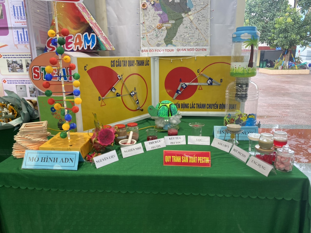 Đến với ngày hội giáo dục Stem của Quận Ngô Quyền, Tổ KHTN đã mang đến gian trưng bày các sản phẩm do các bạn học sinh lớp 9 lên ý tưởng, dưới sự giúp đỡ và hỗ trợ của các thầy cô trong các lĩnh vực: Sinh học; Công Nghệ; Hoá học, Vật lý.