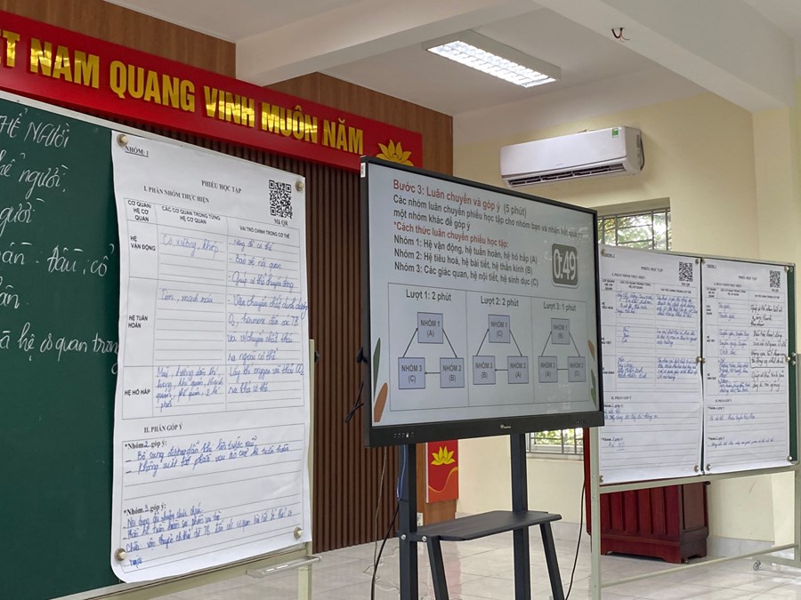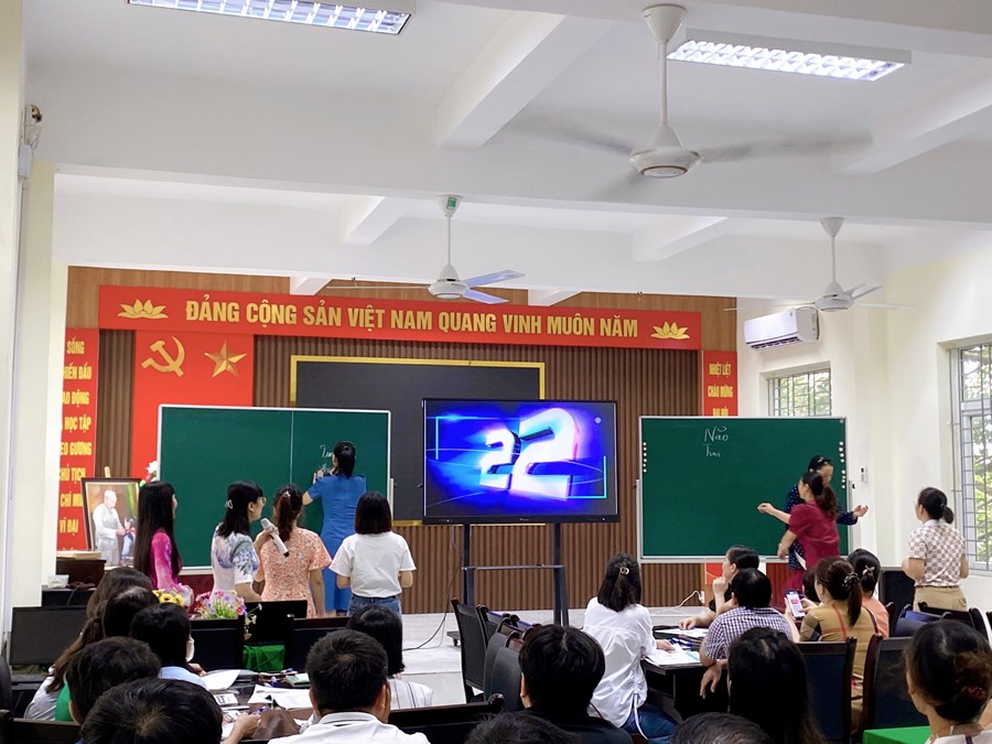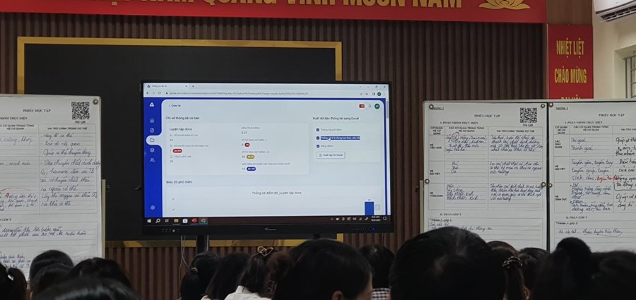 Không chỉ có vậy, tiết học còn áp dụng mô hình lớp học thông minh bằng cách ứng dụng nhiều hình thức và công cụ dạy học như: bảng tương tác thông minh; quét mã QR để thu nhận thông tin trong quá trình học, sử dụng ứng dụng phần mềm Azota giao bài và chấm điểm trực tuyến.