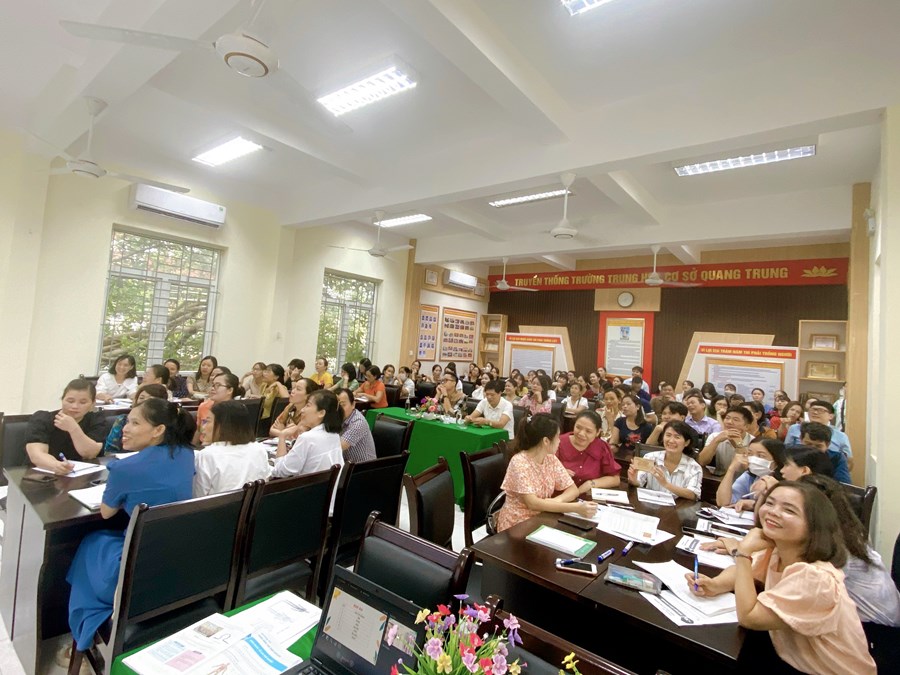 Sáng ngày 16/08/2023, trường THCS Quang Trung đã tổ chức tiết lên lớp dạy thử sách giáo khoa lớp 8 môn Khoa học tự nhiên. Tiết dạy do cô giáo Đỗ Thị Thanh Mai cùng các thầy, cô giáo ở các trường THCS trong quận Ngô Quyền sắm vai học sinh thực hiện bài học “Khái quát về cơ thể người”