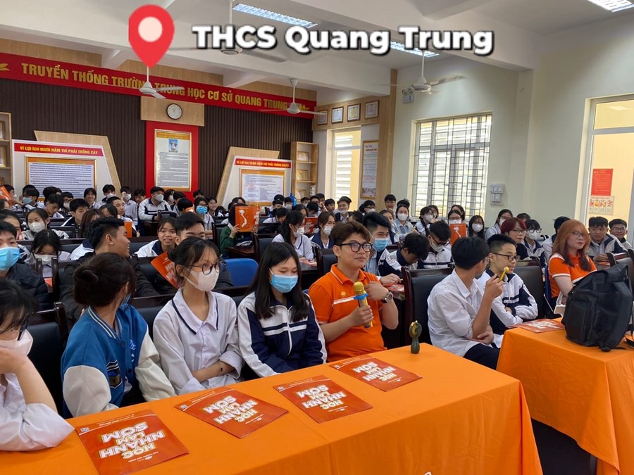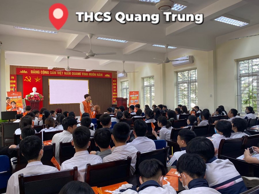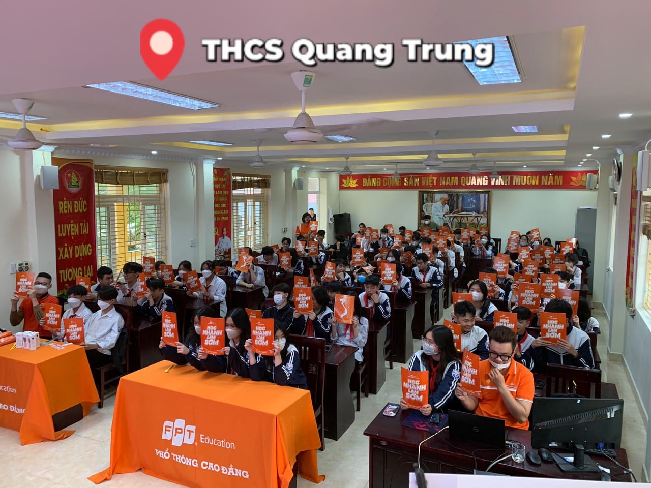 Thực hiện Chương trình công tác Đội và phong trào thiếu nhi năm học 2022-2023; nhằm trang bị cho học sinh kiến thức, kỹ năng cơ bản trong việc lựa chọn nghề nghiệp tương lai phù hợp với năng lực bản thân, ngày 10/3/2023, Liên đội THCS Quang Trung phối hợp với trường Cao đẳng FPT Polytechnic tổ chức Tour hướng nghiệp với chủ đề “Genz chọn nghề - Hiểu đúng, chọn trúng” năm 2023.