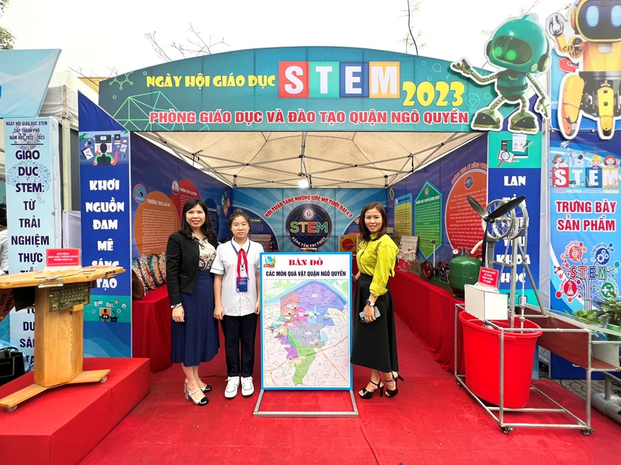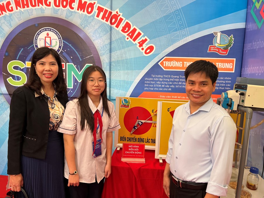 Đến với “Ngày hội giáo dục STEM” cấp thành phố, Trường THCS Quang Trung có hai sản phẩm phẩm trưng bày là “Mô hình biến đổi chuyển động” và “Bản đồ các món ăn vặt quận Ngô Quyền” Để tạo ra hai sản phẩm này các em trong CLB STEM của nhà trường đã tự nghiên cứu, tự tìm hiểu, sáng tạo để tạo ra 2 sản phẩm có tính ứng dụng cao trong học tập.